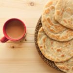 Grease your hands with ghee,take a small dough and make a ball,coat in dry flour and roll out dough with the help of rolling pin.