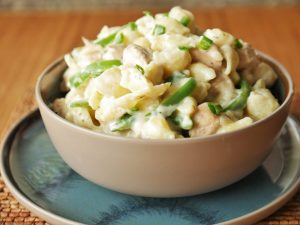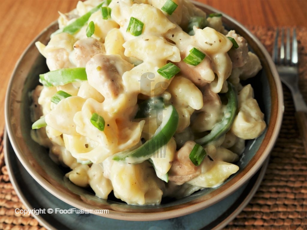White sauce mein stir-fried vegetables,cooked chicken aur boiled shell pasta dal ker ache tarhan mix ker lein.