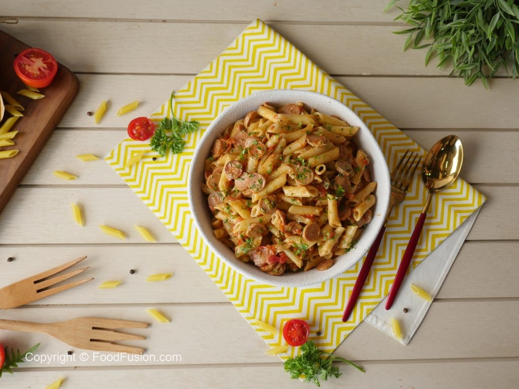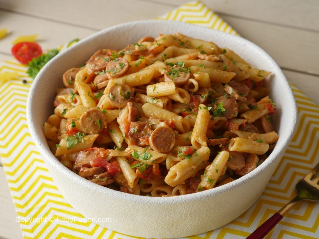 Penne Pasta with Sausages a quick and easy hunger solution #HappyCookingToYou #FoodFusion #Monsalwa