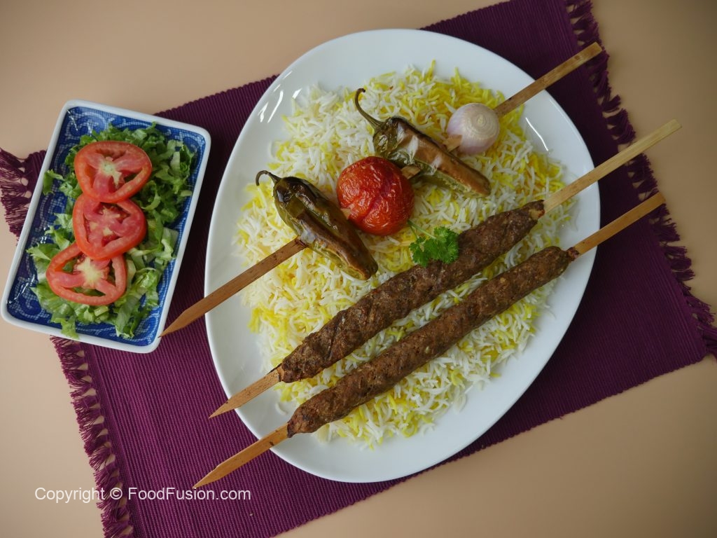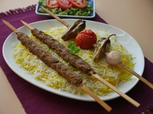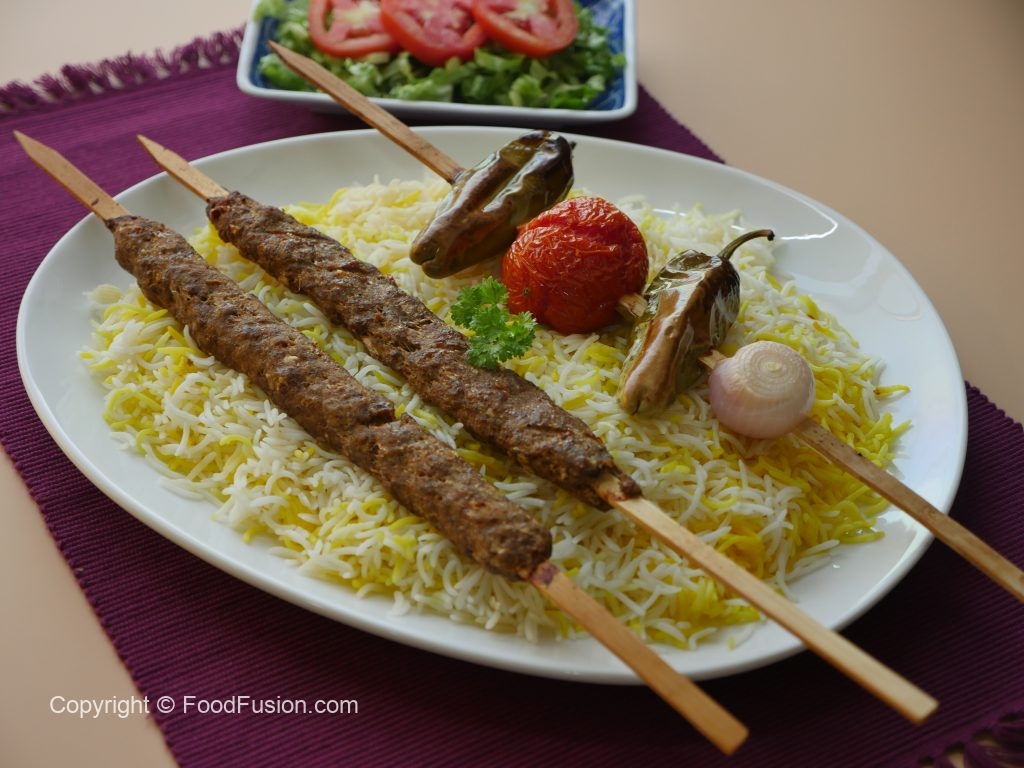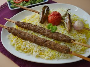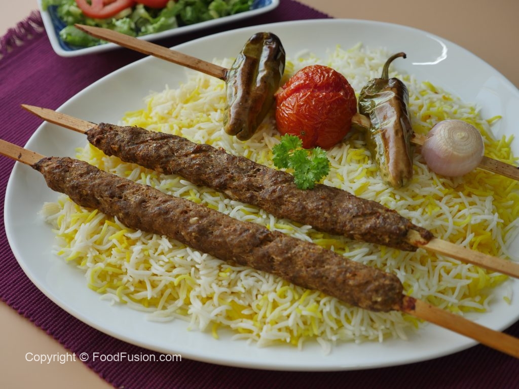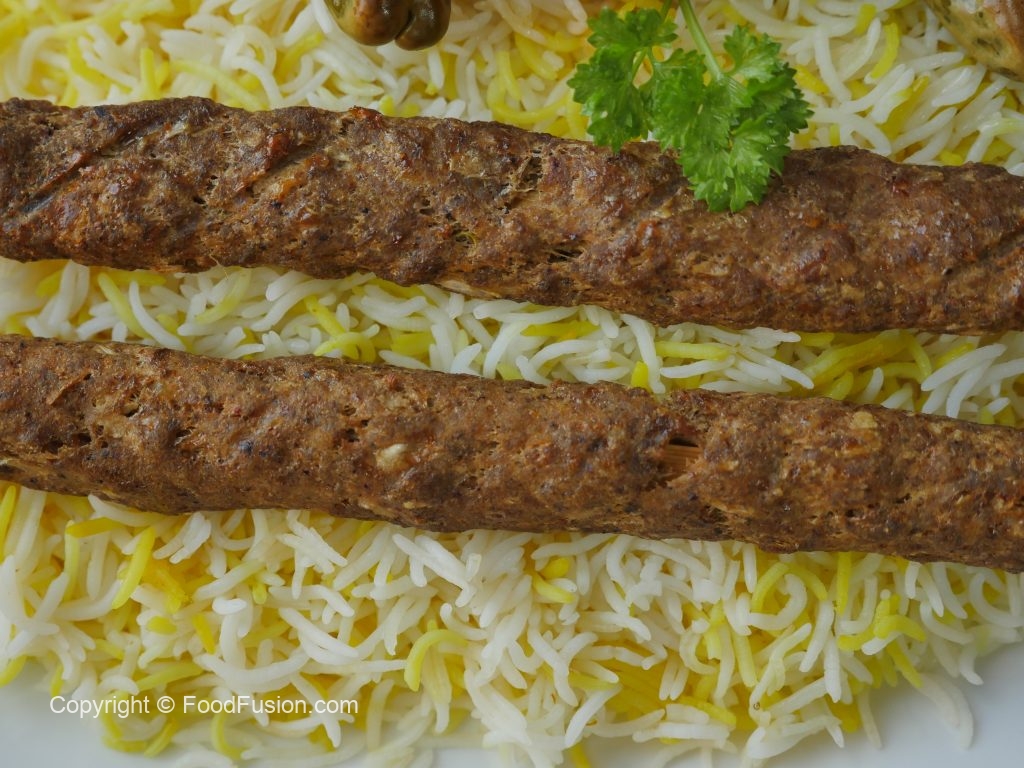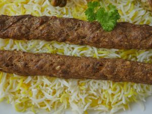 Serve saffron rice with kabab.