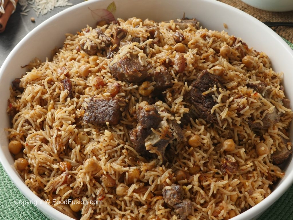 -Now add cooked meat,sprinkle reserved ground spices (1 tsp),cover with kitchen cloth & lid and cook on high flame for 2 minutes to build up steam then steam cook on low flame for 8-10 minutes.