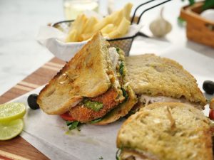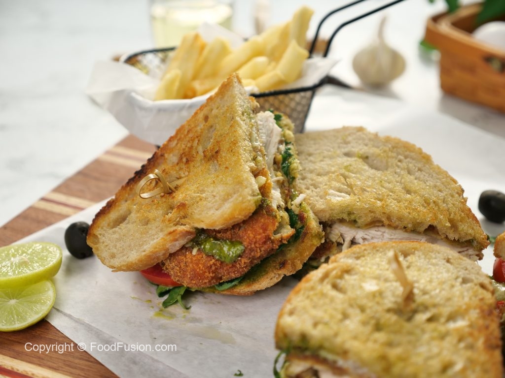 -Serve with potato fries,Pesto sauce & salad.