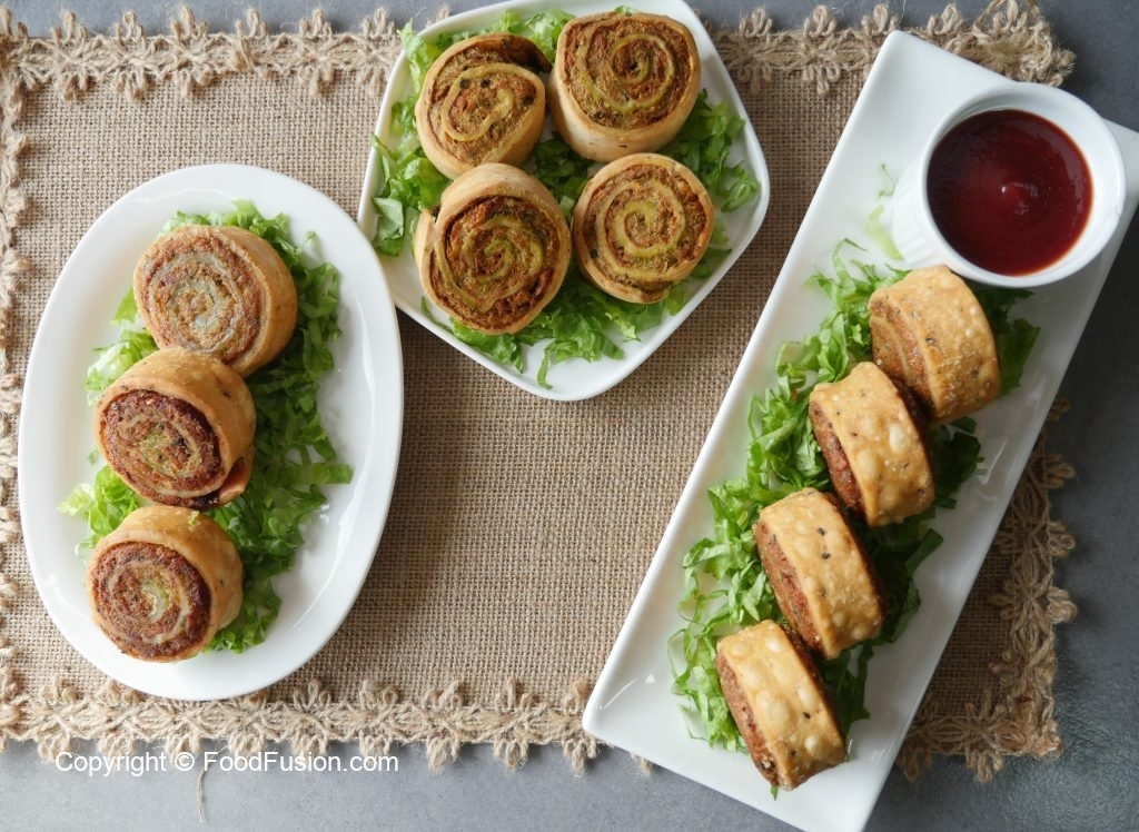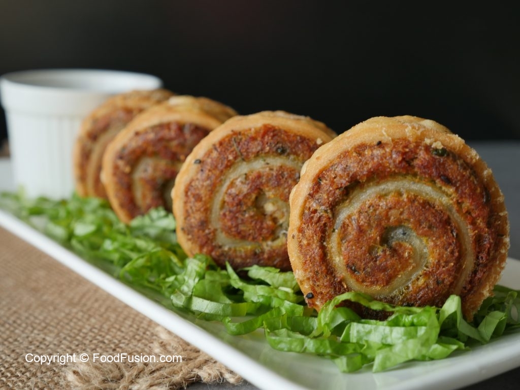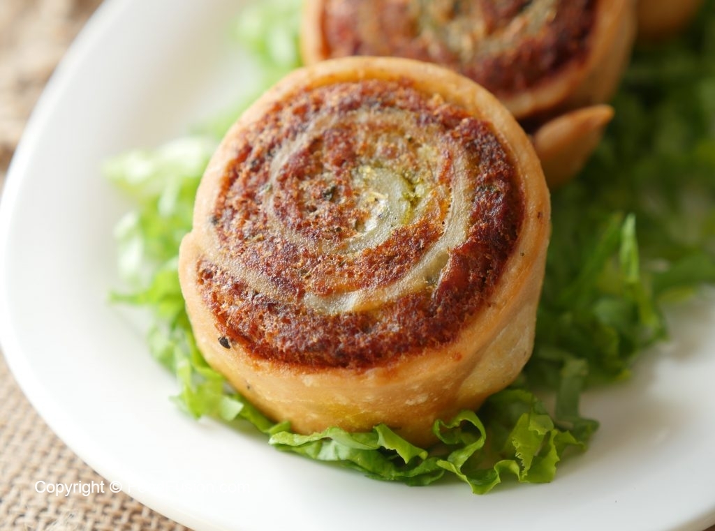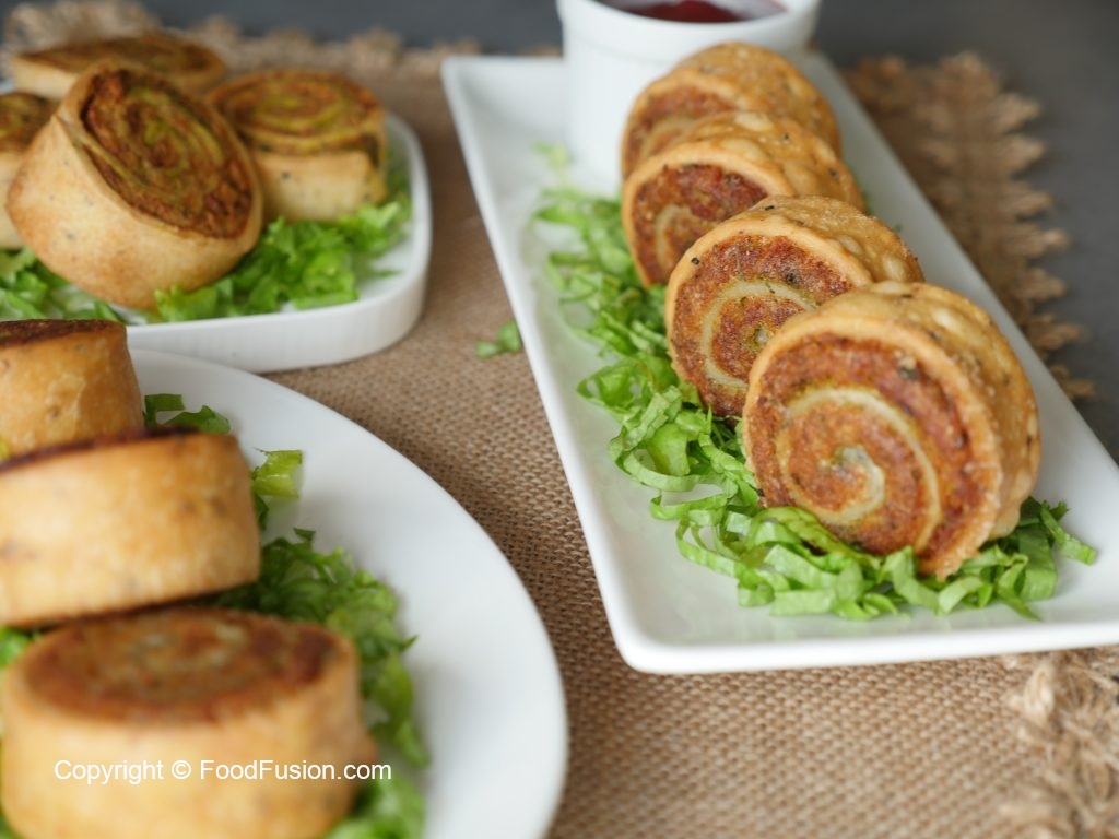 Karhai mein cooking oil garam karein aur pin wheel slices ko flour slurry mein dip karein aur darmiyani halki ancch per dono sides sa golden brown hunay tak fry ker lein.