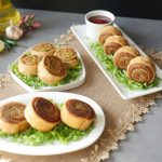 Roll out dough & cut into pin wheels slices (not more than 1 inch) (makes 24-25).