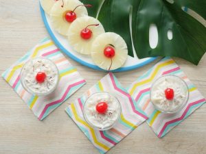 Fresh coconut sprinkle ker ka cherry rakh dein.