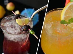 -In a jug,add ice cubes,prepared lemonade,peach,red grapes,apple,lemon,orange juice,pineapple juice, sparkling water,omore traffic light & mix well.