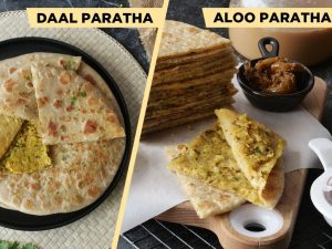 -Heat griddle,place paratha & fry from both sides with clarified butter (makes 7).
