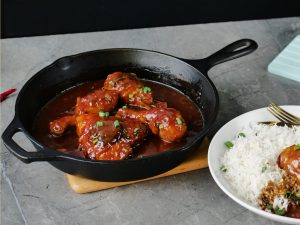 -Heat sizzler pan,add qeema manchurian & serve with fried rice!