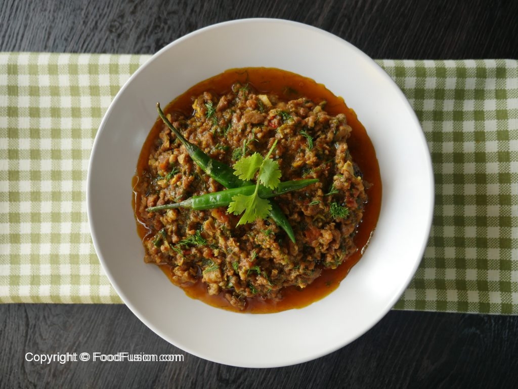 Mutton qeema shamil karein aur rang tabdeel hunay tak ache tarhan mix karein aur 8-10 minutes or oil alag hunay tak paka lein.