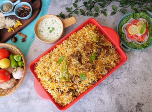 In a bowl,add yogurt,biryani masala,mix well & set aside.