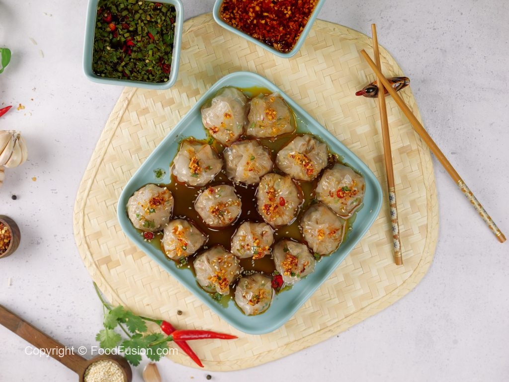 -Drizzle dipping sauce,garlic chilli oil,sesame seeds & serve!