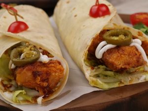 -Cut diagonally into 2 parts, add 1 tbs chicken mixture.