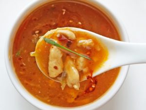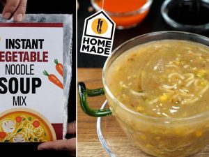 -Chicken stock, caster sugar, pink salt, sriracha sauce, soy sauce aur vinegar dal kar mix karein aur boil aane dein.