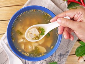 -Chicken rolls add karein, cover karke low flame par 4-5 minutes cook karein. Rolls nikal kar side par rakhein aur broth ko reserve karein.