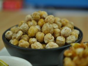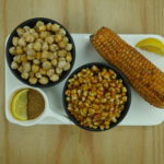 It is very important that the corn kernels are plucked by hand as shown in the video and the exterior of the corn kernels is completely dry. Any extra moisture on corn and chickpeas will make them too salty. Also make sure your salt is very hot when you put in the kernels.