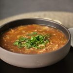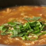 In pot,add chicken,carrot,onion,ginger,garlic,fresh coriander,water and bring it to boil,cover and cook on low flame for 1 hour then take out chicken pieces,shred it & set aside for later use.Chicken stock is ready!