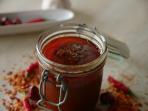 Now add prepared red chili paste,mix well and cook until oil separates (3-4 minutes) & set aside.