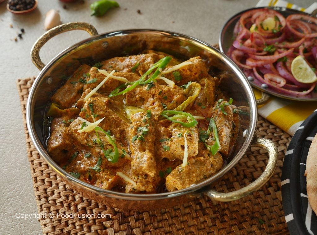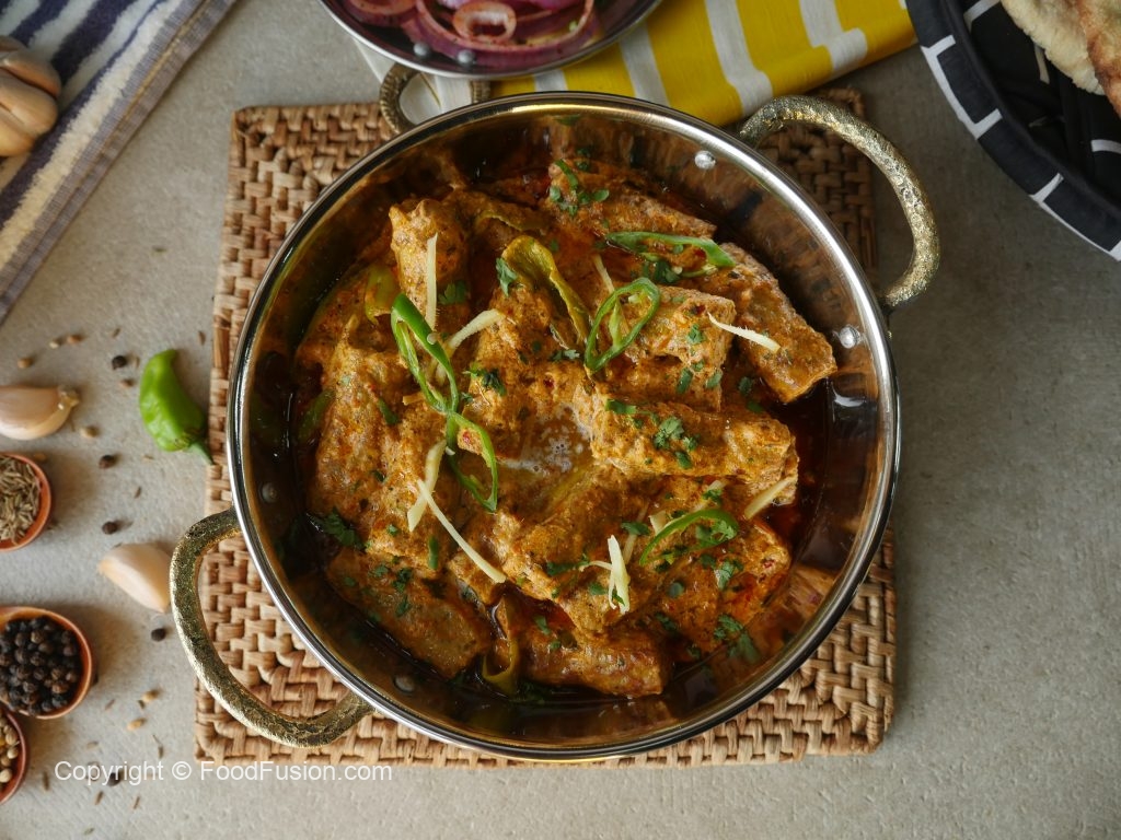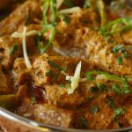 Garnish with butter,ginger,green chilli,fresh coriander & serve with naan.