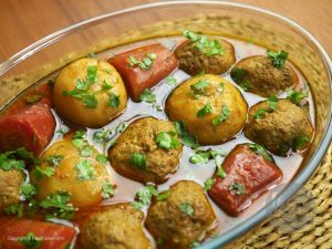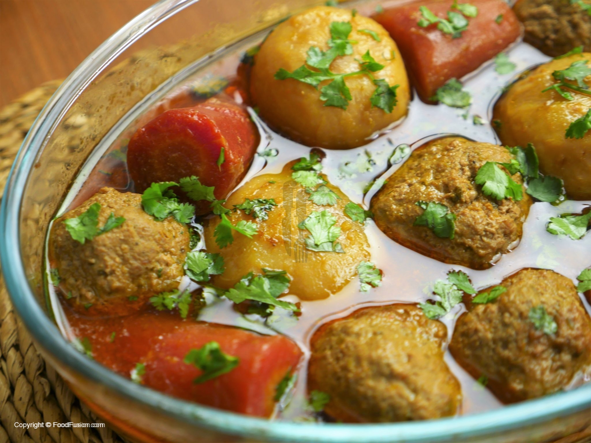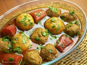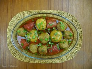 Haathon ko pani sa geela ker lein,qeema mixture ka koftay/meat balls bana lein aur gravy mein shamil kertay jayein.