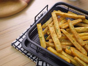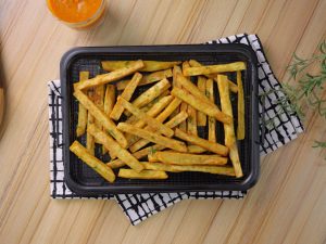 -Ek tray par kitchen cloth bicha den, fries ko single layer mein phela den, achi tarah pat dry kar len, phir kitchen cloth hata den.