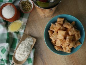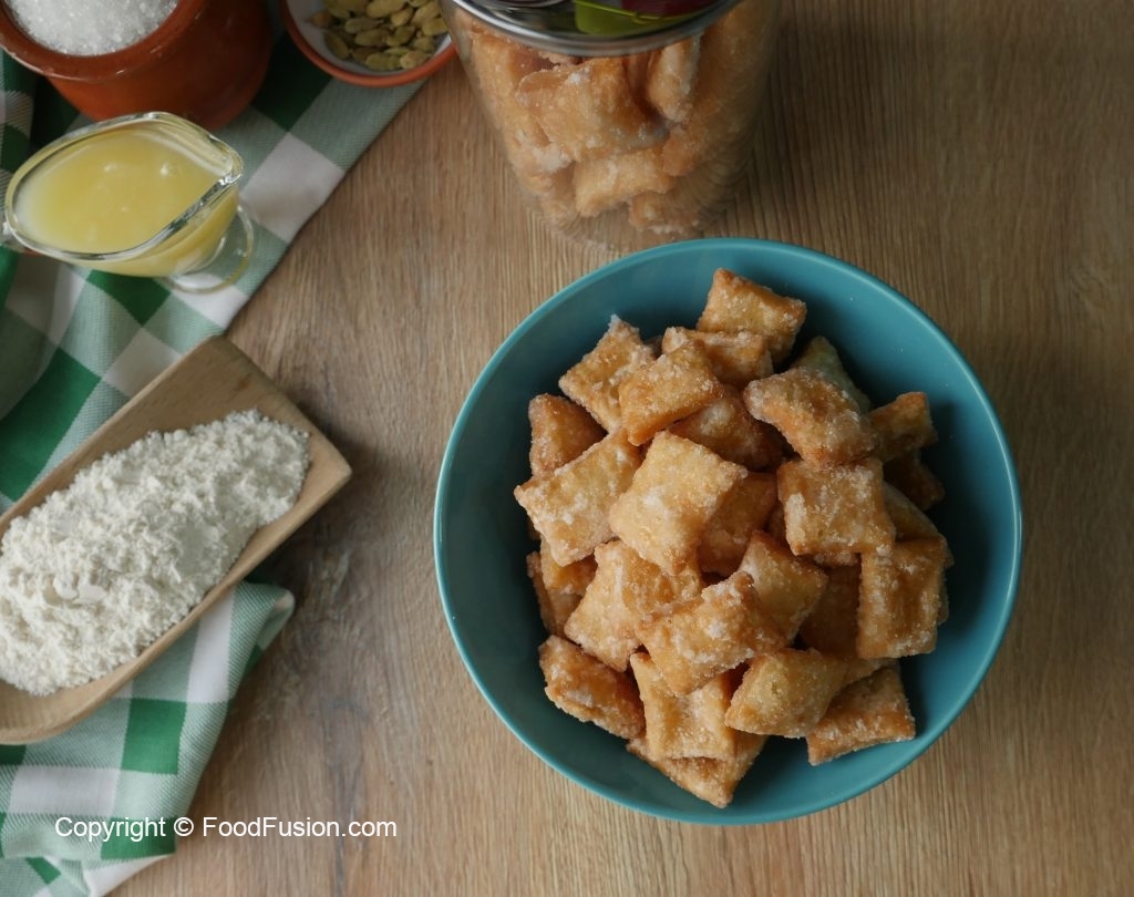 Fried shakarparay dal ker sheeray mein ache tarhan coat ker lein.
