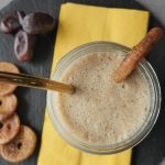 In blender jar,add dates (deseeded),banana,yogurt,milk,cinnamon powder,ice cubes and blend until well combined.