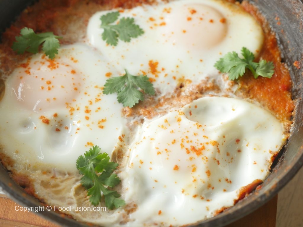Add eggs one by one,sprinkle red chili powder,cover and cook on low flame for 1-2 minutes.