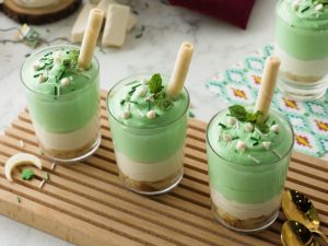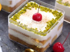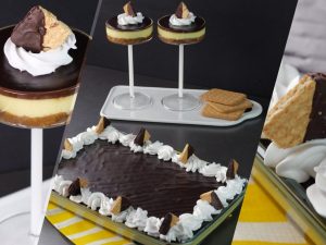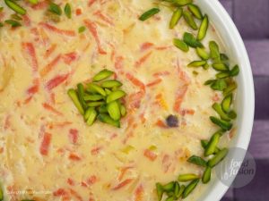 -On a greased 5 x 8” inch baking pan lined with butter paper,add brownie batter,spread evenly & tap few times.
