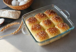 Greased baking tray per buns rakh dein aur dhak ker 1 hour ya size double hunay tak garam jagha per rakh dein.