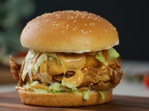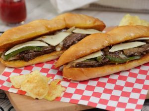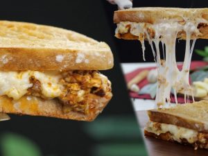 Add cheddar cheese,cooked beef filling,mozzarella cheese and top with another bun (makes 3-4).