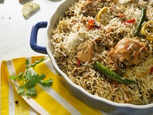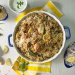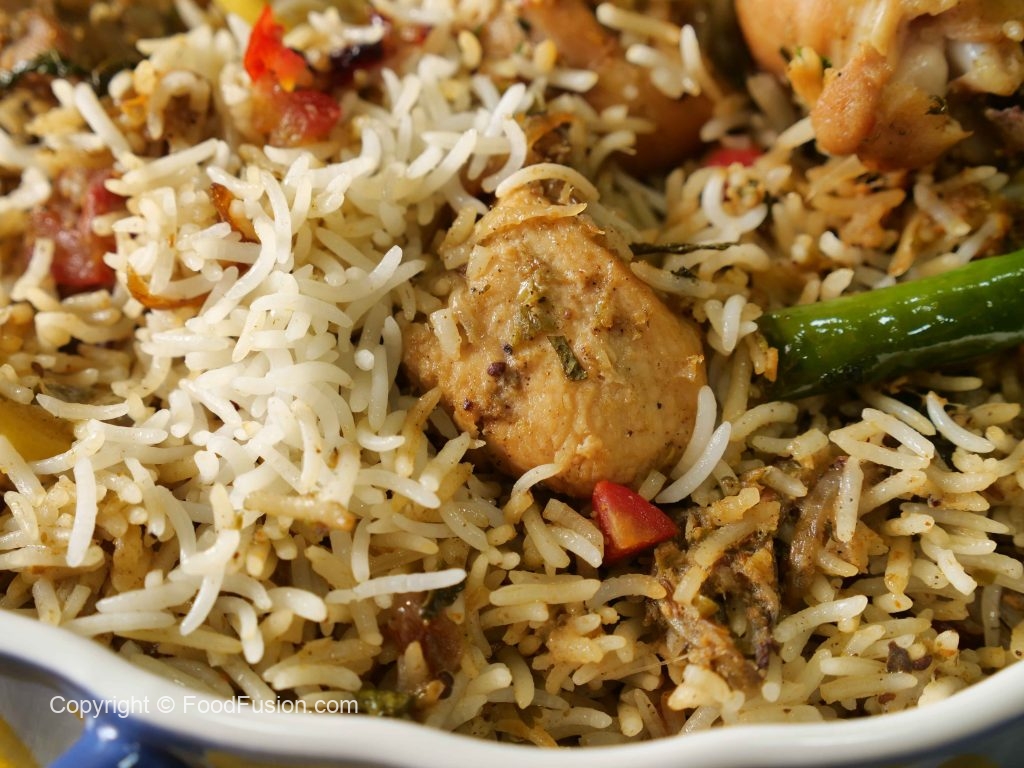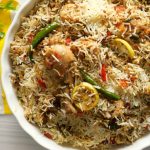 -Bowl mein fried pyaz,tamatar,hari mirch,lemon slices,aloo Bukhara,podina,hara dhania,zeera aur biryani masala dal ker ache tarhan mix karein & side per rakh dein.