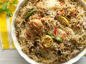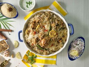 -In a bowl,add fried onion,tomatoes,green chillies,lemon slices,dried plums,mint leaves,fresh coriander,cumin seeds,biryani masala,mix well & set aside.