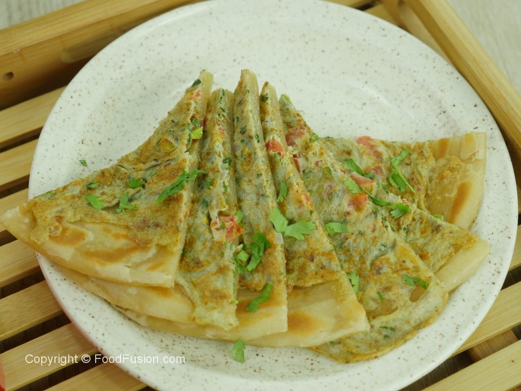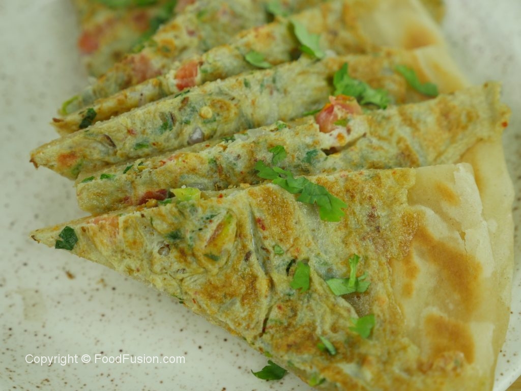 Tawa per cooking oil aur anday ka mixture dal dein aur kuch seconds kliya paka lein phir cooked paratha rakh dein aur gently press ker ka dono sides sa paka lein.