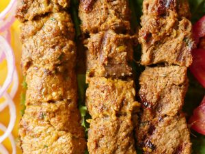 -Give a charcoal some for 3 minutes and insert beef cubes onto the skewers.