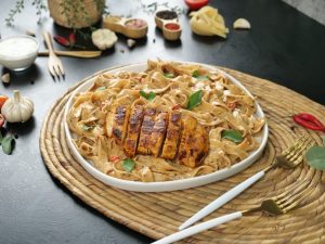 -In a dish,add paprika powder,pink salt,black pepper powder,red chilli powder,garlic powder,cooking oil, lemon juice & mix well.