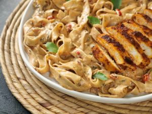 Spicy Fettuccine: A perfect blend of tender pasta and a sauce that brings the fire. A flavor experience you won’t forget. #happycookingtoyou #foodfusion #araywahh
