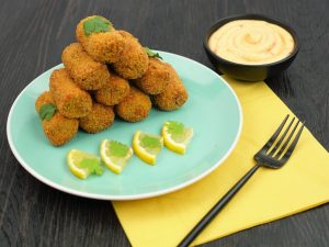 Now coat fish croquettes in all-purpose flour,dip into beaten egg then coat in bread crumbs.