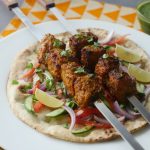 -Marinated meat ko skewers per laga lein.