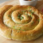 Baking tray ko melted butter sa grease karein aur rolled paratha ko spiral shape mein roll ker lein aur dono paratha ko ek dosray ka saath pinch ker ka seal ker lein aur brush ki madad sa melted makhan laga lein.