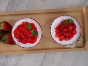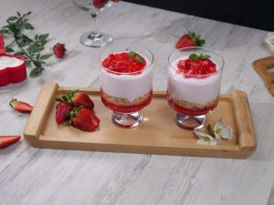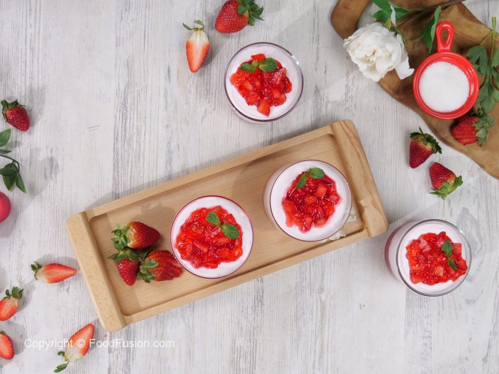 -Chop strawberries with the help of knife (approx. 1 Cup) & set aside.