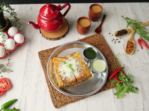 -Cheddar cheese slice,grated mozzarella cheese aur chaat masala dal dein aur dosray bread slice sa cover ka sandwich tayyar ker lein.