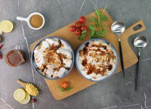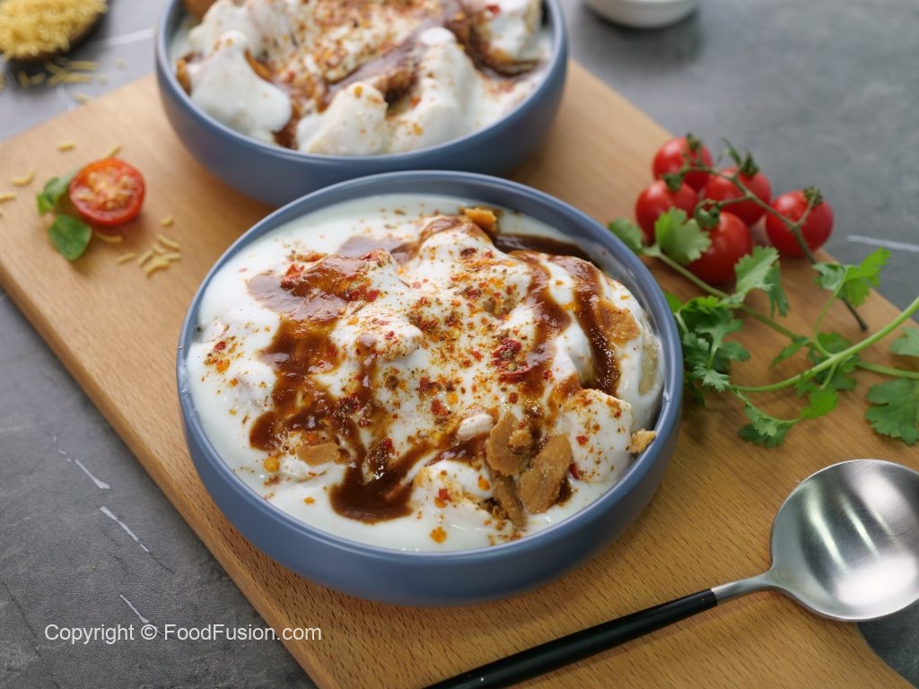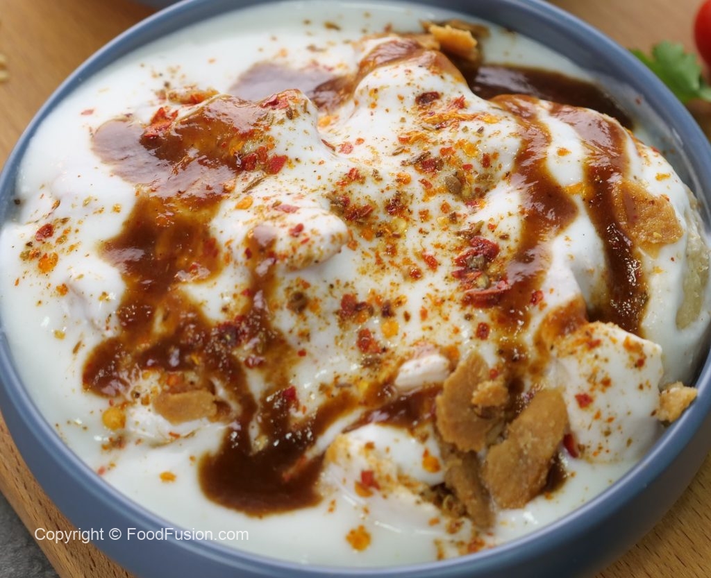 -Add papdi,dahi bara masala,prepared dahi,dahi bara masala,khatti meethi chutney & serve!