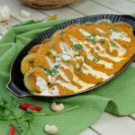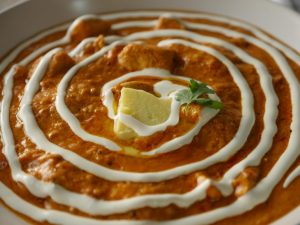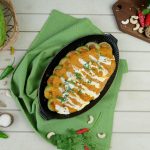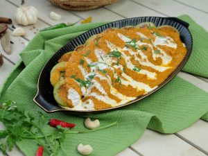 Cream drizzle karein aur hara dhania dal ker serve karein!
