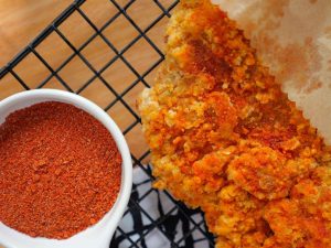 -In a wide base bowl, add potato starch & bread crumbs, mix well.