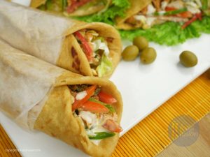-Three bread slices per tayyar sauce,tandoori chicken pieces aur cheese slice dal ker flip ker lein phir tayyar sauce,salad patta,pyaz,tamatar,kheera aur cooked anda dal dein aur bread slice ko flip ker ka sandwich bana lein.