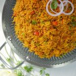 -Garnish tawa veg pulao with onion rings & serve with zucchini dahi.