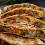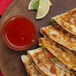 -Grease frying pan with cooking oil & cook stuffed tortillas from both sides until golden brown & apply oil in between (makes 12 triangles quesadillas).