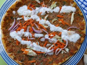 Chota dough lein aur maida chirak ker rolling pin ki madad sa bail lein.