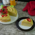 Remove from frying pan and place the crepe on a kitchen towel so that it will not stick & allow the layers to cool down completely at room temperature before stacking them (makes 15).