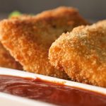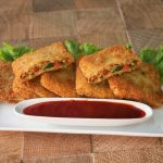 Now coat prepared box patties in all-purpose flour,dip into beaten eggs then coat in bread crumbs and again dip into beaten eggs then coat in bread crumbs.